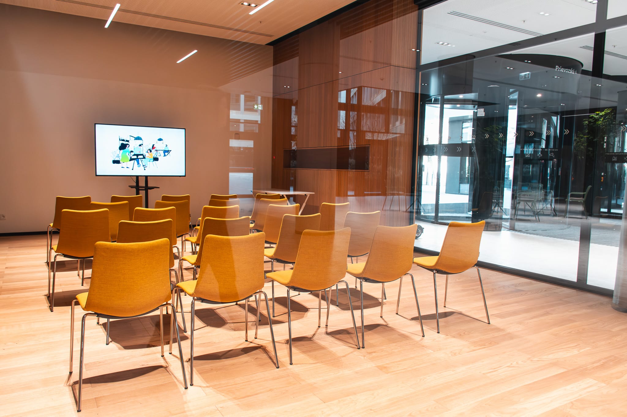 Lobby ideálne na pop-up eventy, umelecké výstavy, prezentácie vašej značky, networkingové podujatia alebo firemné oslavy.