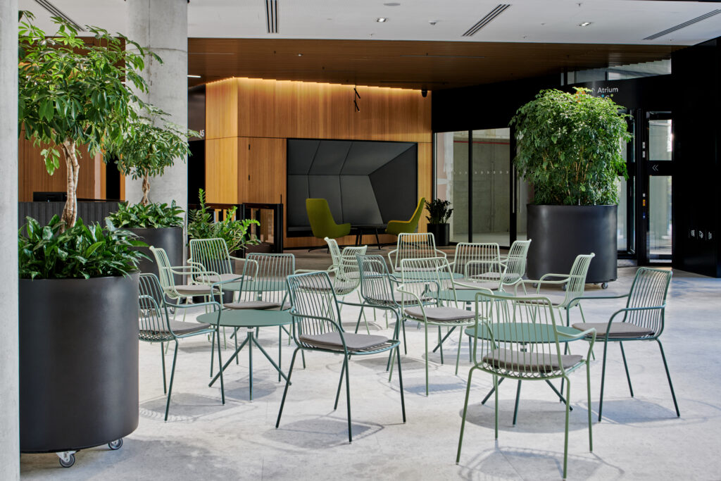 Je to viac ako obyčajný vstupný priestor. Je to pulzujúce srdce budovy, kde sa denne stretávajú zamestnanci, klienti a návštevníci. Dizajn lobby spája funkčnosť s moderným štýlom, vďaka čomu vytvára príjemnú a reprezentatívnu atmosféru.
