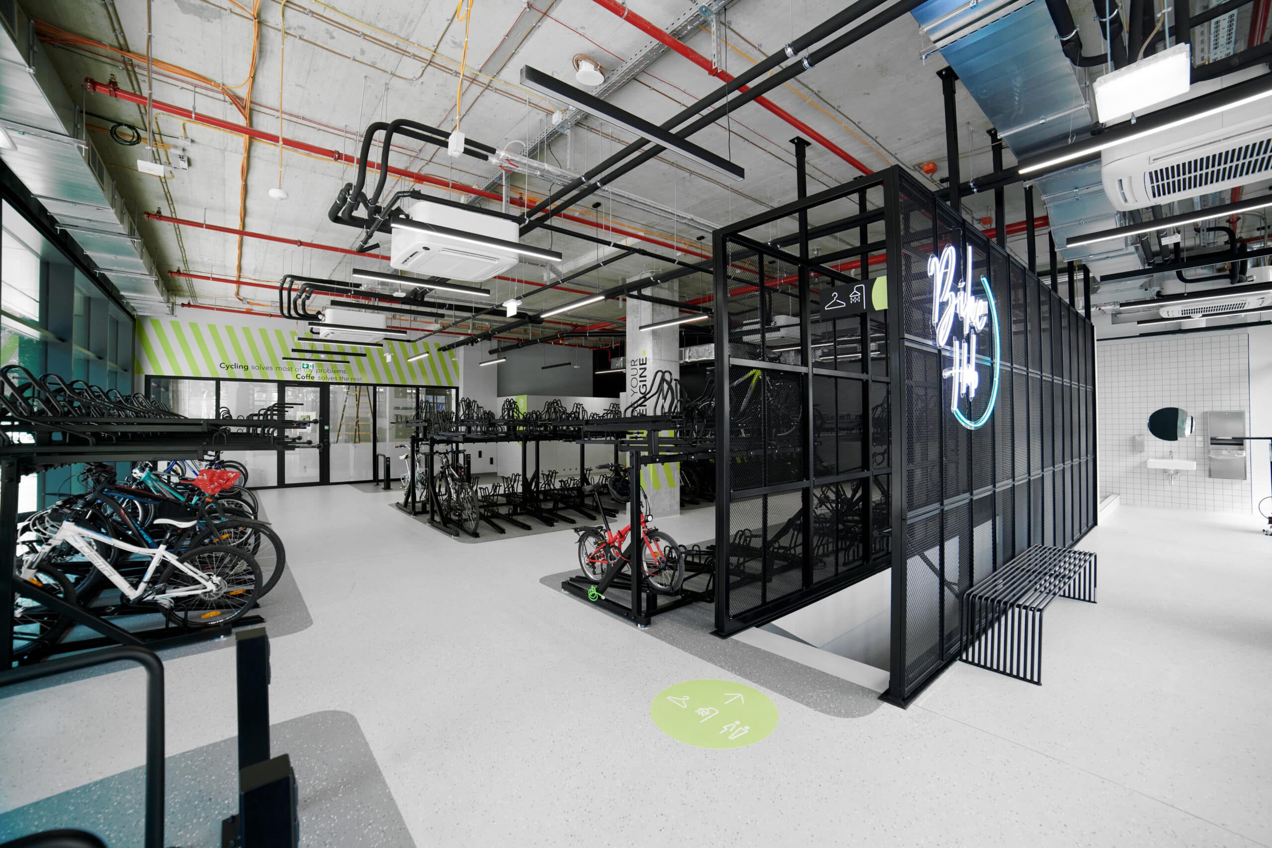 Požičajte si bicykel alebo e-kolobežku priamo v lobby, stačí použiť appku. Cyklo Hub ponúka aj moderné parkoviská pre bicykle, samoobslužné opravárenské stanice, sprchy, šatne a zapožičanie osušky. Na začiatku a na konci cyklosezóny môžete využiť servis vášho bicykla priamo v budove.